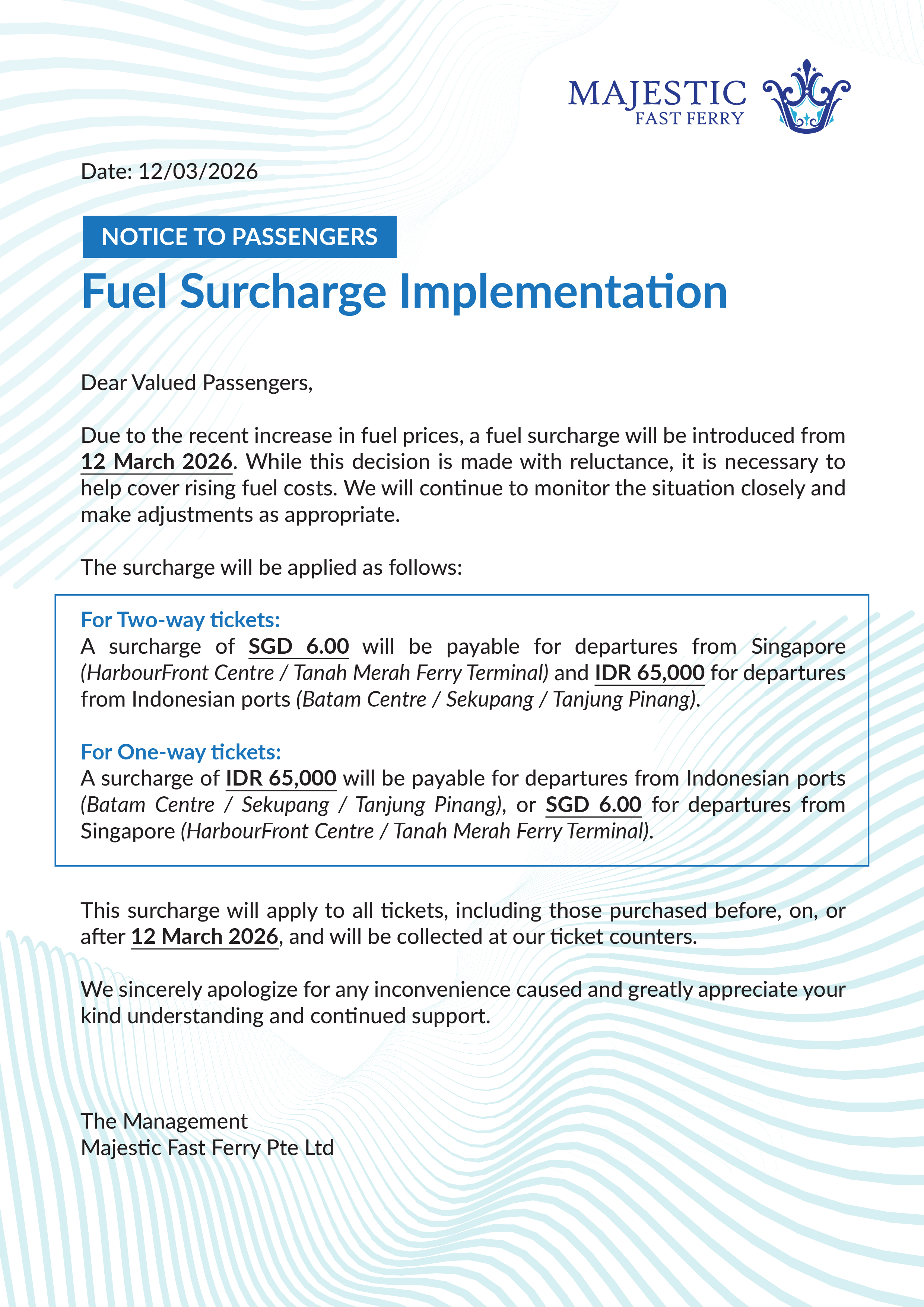 Fuel Surcharge Implementation